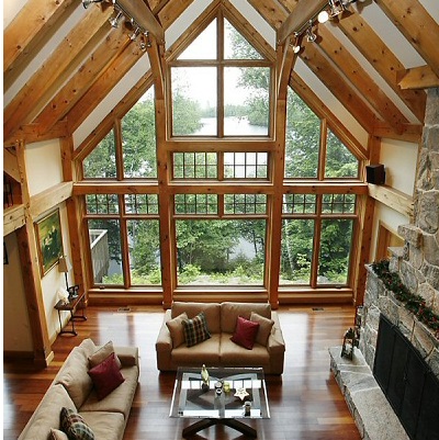 Cottage is a custom designed timber frame structure that is approximately 4800 sq. ft. on three levels